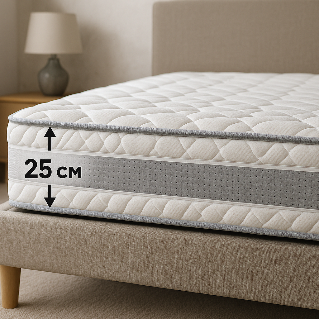 «Оптимальная» — это не про модный дюйм и не про «чем выше, тем лучше». Это про баланс: нейтральная спина, удобная посадка, правильная вентиляция и прогнозируемые ощущения в течение всего срока службы. В среднем по рынку комфортный диапазон для взрослых — 22–28 см. Ниже 20 см — это уже специализация (дача, гости, дети, диван), выше 30 см — премиум-ощущение и визуальная «монументальность», но есть нюансы по весу, высоте царг и глубине простыней.