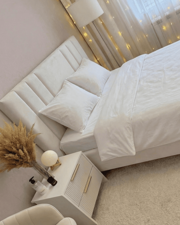 Высокое изголовье добавляет благородства, а чистые линии позволяют ей «дружить» с любым стилем в доме. Но главное — это уход за вашим спокойствием. Буквально. Увеличенное пространство под кроватью означает, что робот-пылесос проедет без препятствий, а вам не придётся разбирать весь уголок ради уборки.