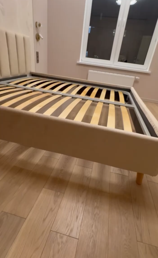 - В комплект кровати входит кроватное основание. Каркас цельносварного основания выполнен из металла, ламели - из берёзы. Конструкция бесшумная, имеет высокую прочность и обеспечивают равномерное распределение нагрузки.