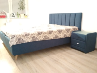 - Модель изготовлена из ДСП. Обивка кровати выполнена из экокожи класса «люкс» или мебельной ткани.
