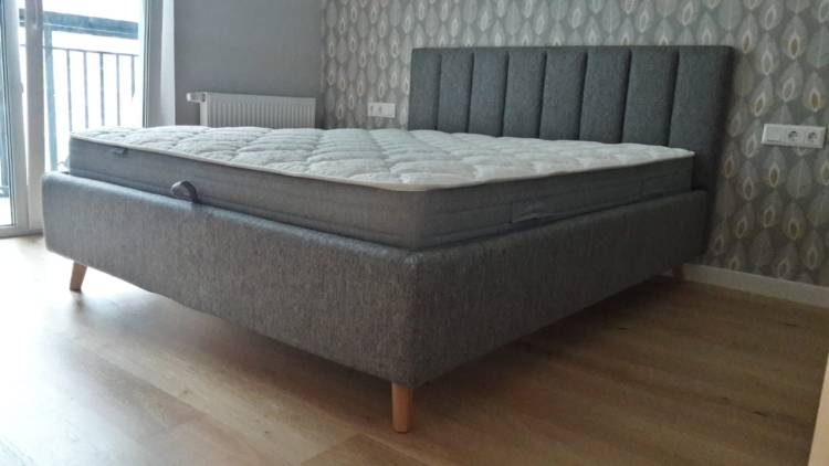 - Дополнительно можно заказать подъемный механизм и бельевой ящик (глубина ящика составляет 14 см), чтобы использовать место под кроватью для хранения. Дно бельевого ящика легко сдвигается для обеспечения уборки под кроватью.