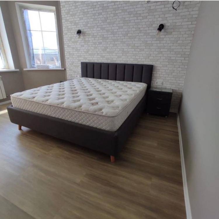 - Модель изготовлена из ДСП. Обивка кровати выполнена из экокожи класса «люкс» или мебельной ткани.