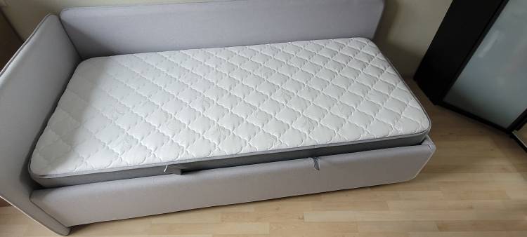 - Дополнительно можно заказать подъемный механизм и бельевой ящик, чтобы использовать место под кроватью для хранения. Дно бельевого ящика легко сдвигается для обеспечения уборки под кроватью.