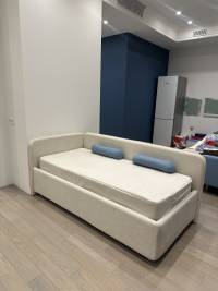 - Кровать-софа с обивкой из экокожи или мебельной ткани