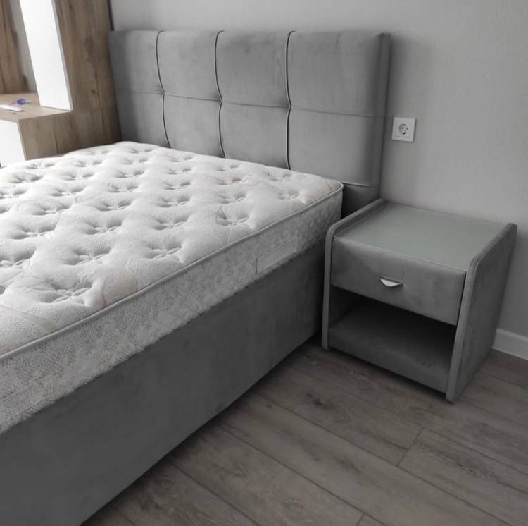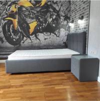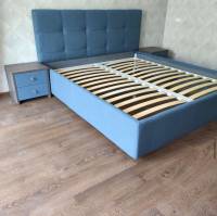 - Модель изготовлена из ДСП. Обивка кровати выполнена из экокожи класса «люкс» или мебельной ткани.