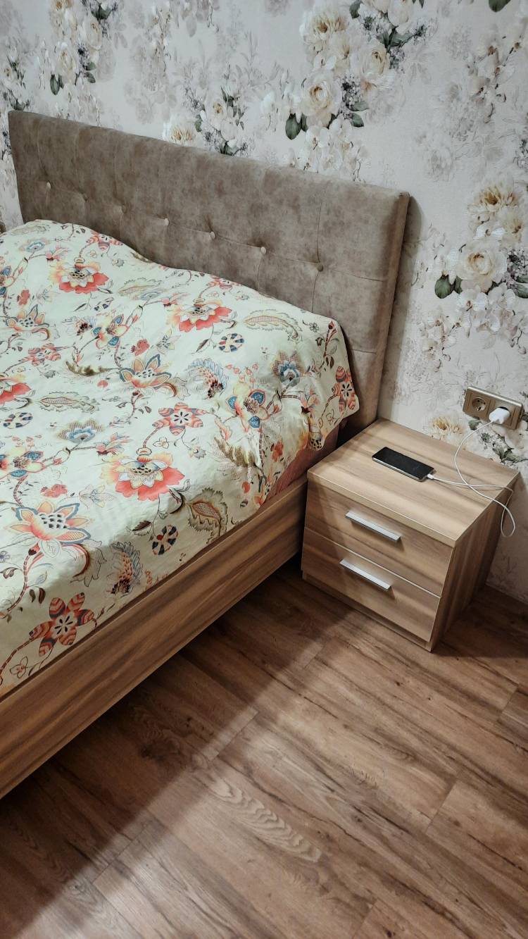 Стильная и удобная кровать. У старой мягкой в первую очередь истерся кожзам на царгах, поэтому сейчас выбрала модель без обивки на царгах. Благородный бежевый цвет спинки и ЛДСП под натуральное дерево очень гармонируют.