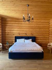 - Модель изготовлена из ДСП и МДФ. Царги и изголовье обиты экокожей класса «люкс».