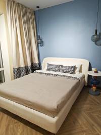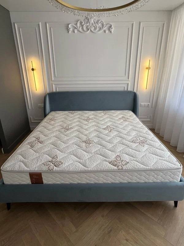 - Изголовье с обеих сторон имеет отделку из мебельной ткани