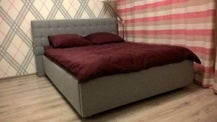 - Модель изготовлена из ДСП. Обивка кровати выполнена из экокожи класса «люкс» или мебельной ткани.