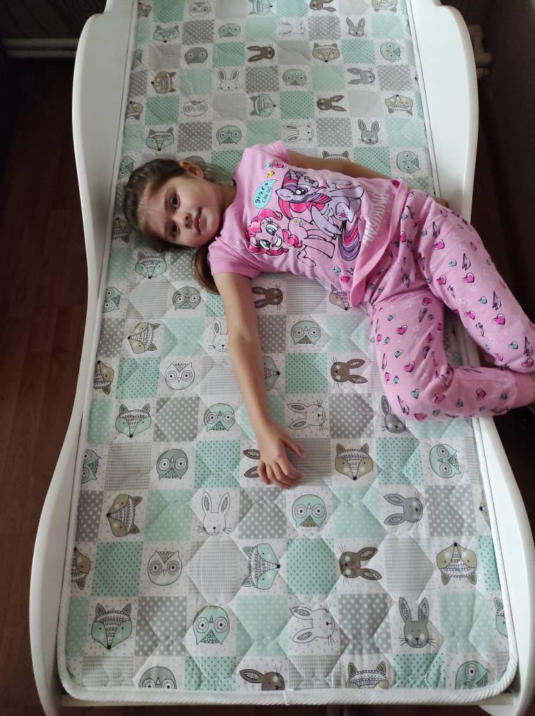 Приобрели матрас для ребенка 4 лет. Долго выбирали для двухярусной кровати, поскольку для нее требуется определенная высота матраса, остановились на данной модели и ничуть не пожалели. Качество матраса очень хорошее, в меру плотный, очень удобный. Не смотря на то, что высота матраса небольшая, спать на нем очень комфортно. Рекомендую для деток!