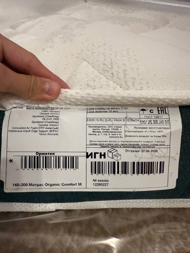 - Ячеистая пена Ormafoam с эффектом массажа и упругий латекс с разных сторон матраса позволяются выбрать ощущения по вашим предпочтениям