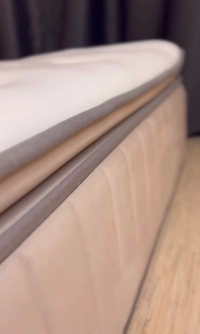 Верхний слой — пришитый топпер, который не смещается, обеспечивает повышенную мягкость и придаёт кровати дорогой, законченный вид.